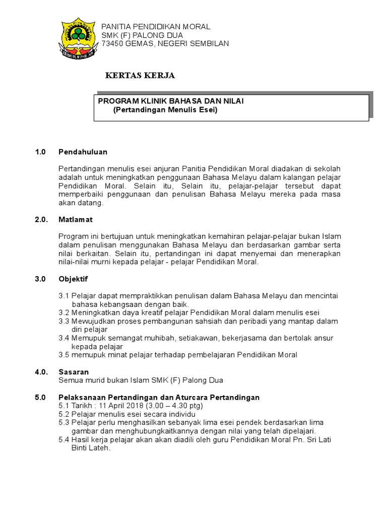 Kertas Kerja Pertandingan Menulis Esei Pdf